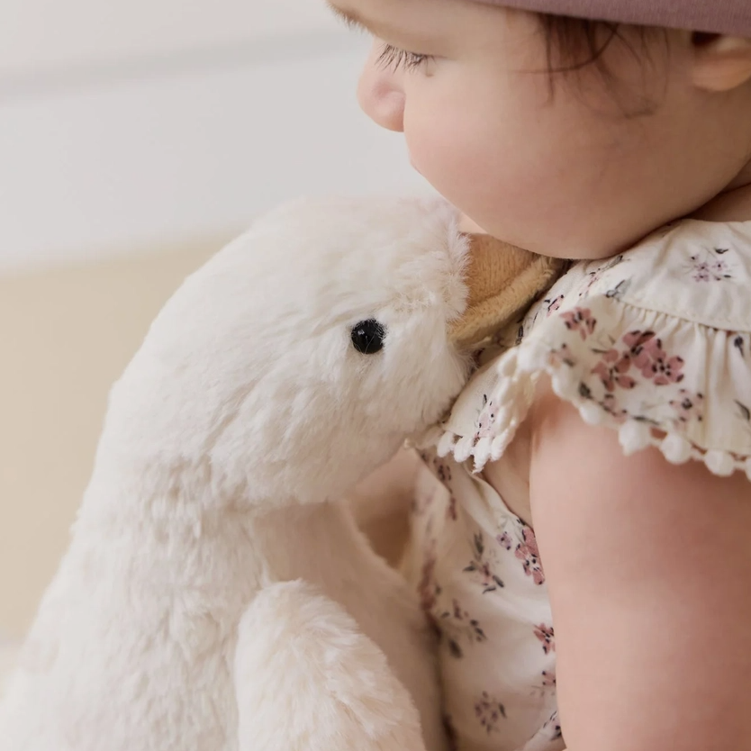 Say hello to Rosie, the adorable duck who's ready to become your little one's new best friend! Irresistibly soft makes for the coziest cuddles around, this charming companion is perfectly sized for tiny hands and big adventures. Her creamy tones make her as lovely to look at as she is to snuggle. Whether she's tagging along on family outings or providing comfort at bedtime, Rosie brings joy and love to every moment.
