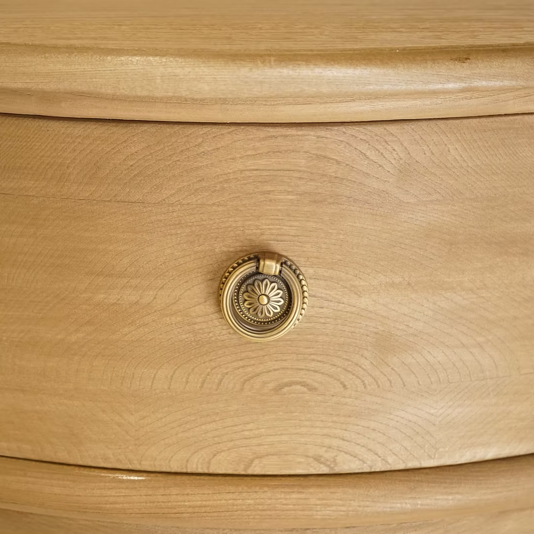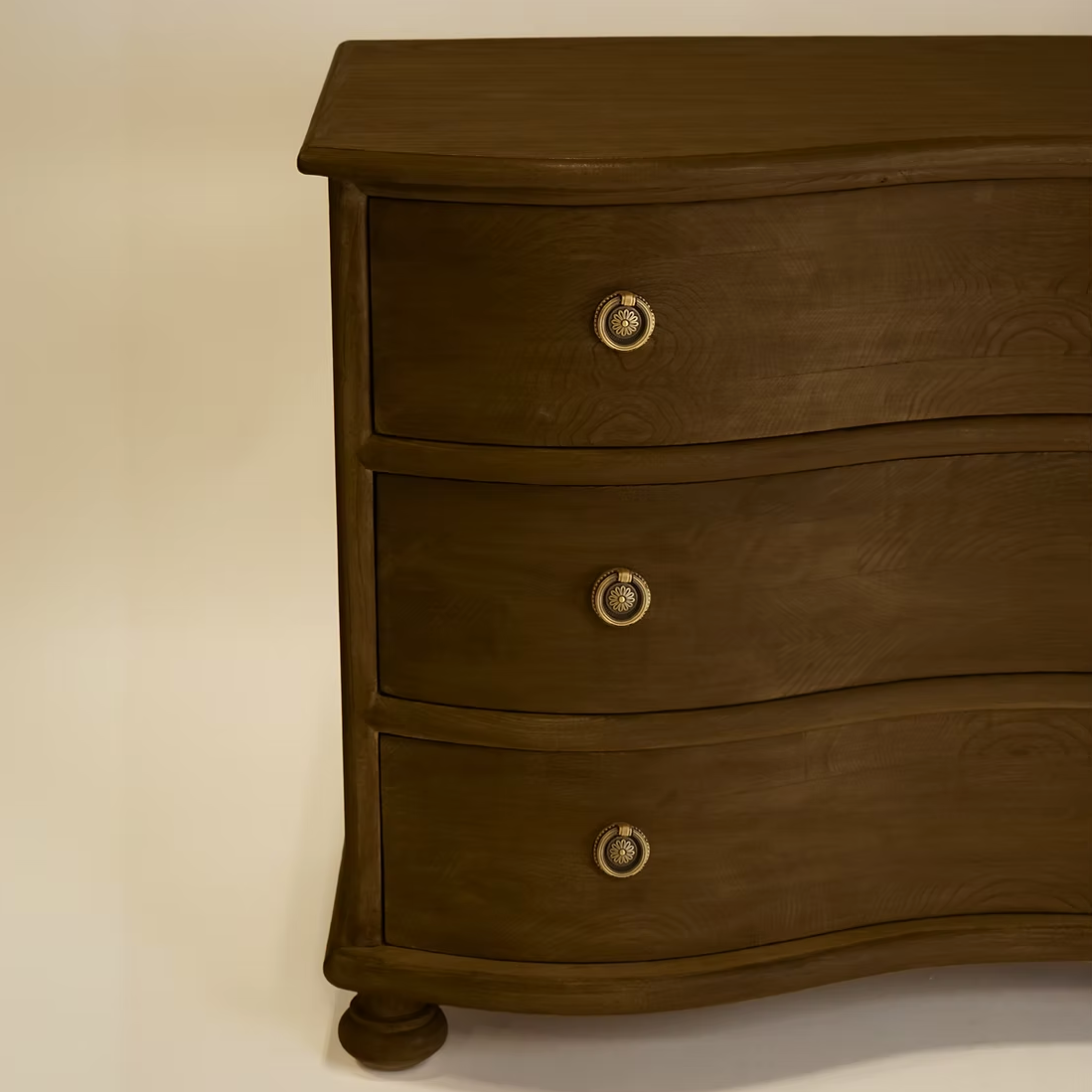 The Ashby Chest whispers stories through its handcrafted form. Built from reclaimed wood spanning 60–100+ years, it marries gentle curves and rounded feet with understated elegance. Brass hardware catches the light with timeless grace, while the wood's natural character—every grain, knot, and weathered tone—speaks to a life already lived.
