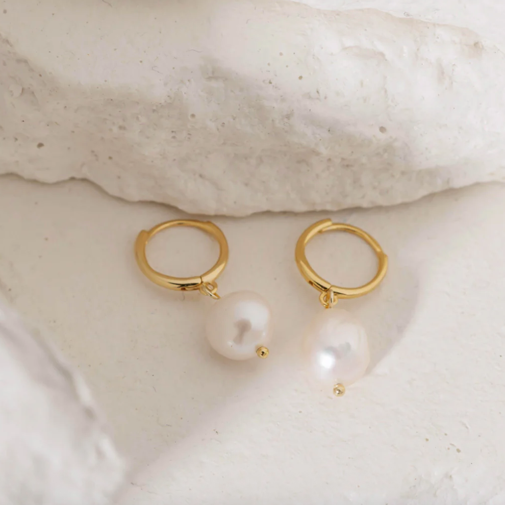 Crafted with 18K triple-layered gold, meticulously adorned with lustrous fresh-water pearls, over sterling silver. Hypoallergenic. Please note each pearl will very in size/shape.